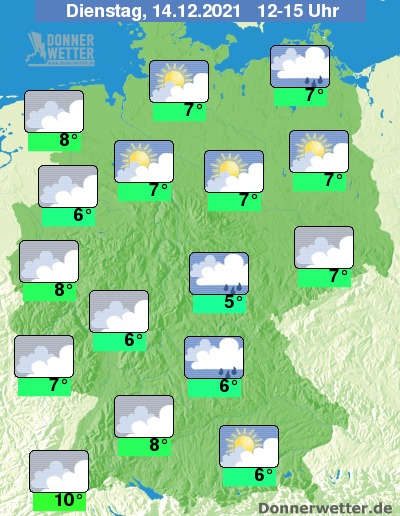 Heute Nachmittag ist es über dem Land weitgehend bedeckt oder es bleibt neblig-trüb, allerdings fallen nur selten ein paar Tropfen. Die Temperatur liegt bei 5 Grad im Thüringer Becken und bis 10 Grad im Breisgau.