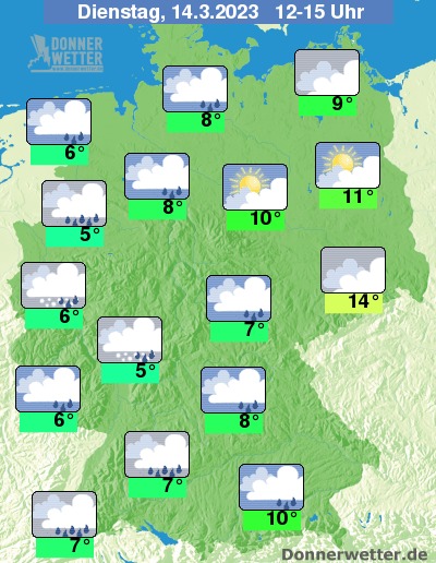 Heute Nachmittag ist es überwiegend stark, vor allem im Osten auch noch hier und da aufgelockert bewölkt, hier bleibt es trocken, sonst bilden sich zeitweise Schauer, teils auch mit Schneeflocken vermischt. Die Temperatur liegt bei 5 Grad am Taunus und bis 14 Grad in der Lausitz. Es weht ein starker und teilweise stürmischer Wind.