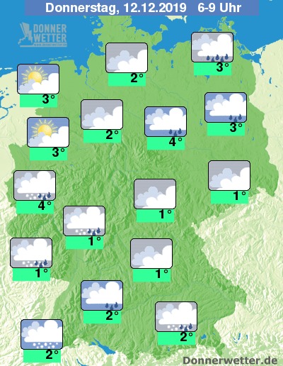 Der Donnerstag startet im äußersten Nordwesten mit gebietsweisen Auflockerungen, in den übrigen Landesteilen bleibt der Himmel zumeist stark bewölkt oder bedeckt. An Ems und Weser sowie im Südosten bleibt es in den Frühstunden überwiegend trocken, sonst fällt immer wieder Regen, in den höheren Lagen des Südens und Südwestens auch Schneeregen oder Schnee. Örtlich muss mit Straßenglätte gerechnet werden!