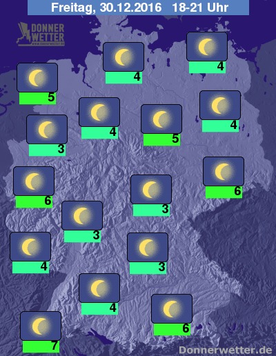 In der Nacht zum Samstag bleibt es über der Republik weitestgehend sternenklar, nur in den küstennahen Gebieten ziehen auch lockere Wolkenfelder durch. Es bleibt trocken bei Tiefstwerten von 3 Grad in Emden und bis -3 Grad am Odenwald.