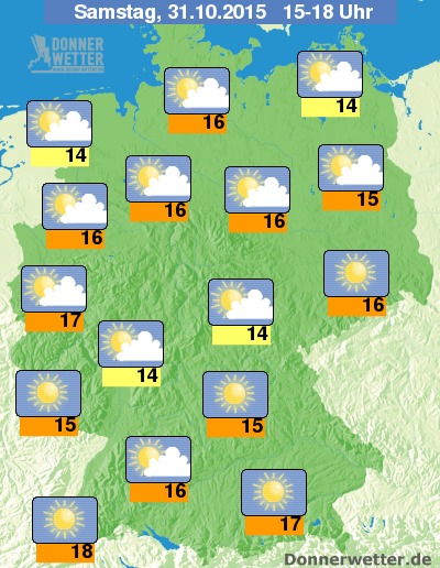 Am heutigen Helloweenabend steht allen Freunden des schaurigen Gruselns und deren Kostümen wettertechnisch nichts im Wege, denn allenfalls über dem Norden und Nordwesten des Landes hält sich öfters eine lockere Bewölkung, im übrigen Bundesgebiet zeigt sich der Himmel hingegen verbreitet sternenklar, dabei bleibt es landesweit trocken. Die Abendtemperatur liegt bei 13 Grad in Dresden und um 8 Grad am Odenwald.