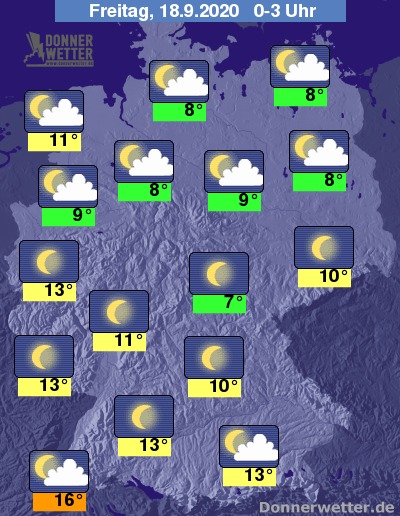 Bis zu den Frühstunden kühlt die Luft auf 12 bis 6 Grad ab, lediglich im Breisgrau bleibt  es mit Werten um 15 Grad noch etwas milder.