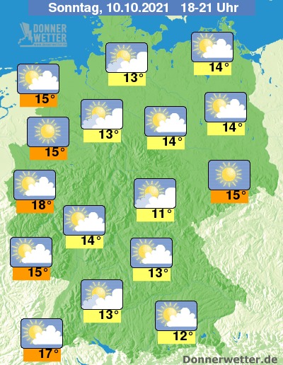Heute Abend ist es teils heiter bis sonnig, gebietsweise ist es aber auch aufgelockert oder stark bewölkt, dabei bleibt es jedoch komplett trocken. Die Temperatur liegt bei 11 Grad im Grabfeld und bis 18 Grad in der Kölner Bucht.