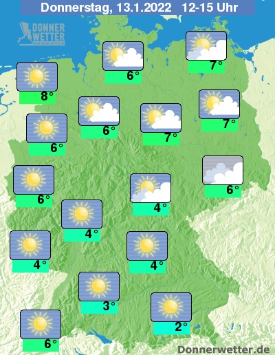 Heute Nachmittag ist es vor allem über der Südwesthälfte des Landes oft heiter bis sonnig, sonst ist es aber auch gebietsweise stark bewölkt oder neblig-trüb, es bleibt landesweit trocken. Die Temperatur liegt bei 2 Grad im Berchtesgadener Land und bis 8 Grad an der Nordsee.