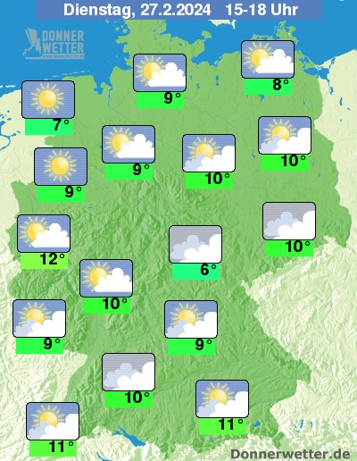 Die Temperaturen erreichen Höchstwerte um 6 Grad in Erfurt und 12 Grad in Köln.