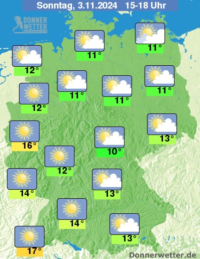 Am Sonntagnachmittag zeigt sich der Himmel über weiten Landesteilen heiter oder nur gering bewölkt, vor allem im Westen und Südwesten scheint die Sonne auch längere Zeit von einem wolkenlosen Himmel. Es bleibt trocken.