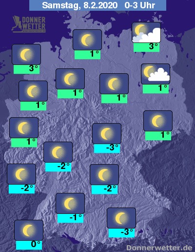 Die Temperaturen sinken auf Werte um 3 Grad an der Nordseeküste und um -3 Grad in Oberfranken.