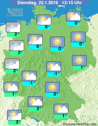 Im Laufe des Nachmittags verdichtet sich die Wolkendecke im Westen immer mehr und dort wo Benelux nahe ist setzt leichter bis mäßiger Niederschlag ein. Im Flachland meistens als Schneeregen, oberhalb 200 bis 300 m in der Regel Schnee. Ab dem Abend muss also hier mit Glätte gerechnet werden. Sonst bleibt es trocken.