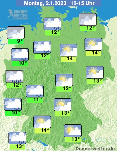 Heute Nachmittag ist es über der Nordwesthälfte des Landes bedeckt und die Sonne zeigt sich nur sehr selten, es fällt gebietsweise Regen. Weiter nach Südosten hin ist es meist stark, hier und da auch mal etwas aufgelockert bewölkt, dazu bleibt es weitgehend trocken. Die Temperatur liegt bei 9 Grad an der Nordsee und rund 14 Grad in Schwaben. An der See ist es teils stürmisch.