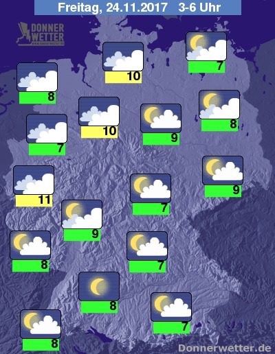 Die Nacht zu Freitag wird dann insbesondere im Süden vielerorts sternenklar, während im Nordwesten des Landes dichte Wolken am Himmel hängen, es bleibt jedoch weitgehend trocken.