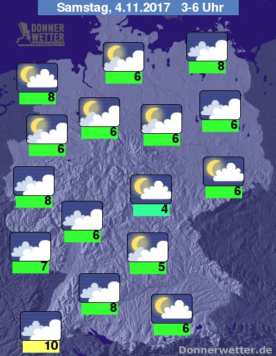 Am Samstag ist es nach Norden hin meist wechselnd bis aufgelockert, sonst schon meist stark bewölkt, dazu ist es zunächst trocken. Gegen Abend ziehen in den westlichsten Landesteilen kompakte Wolken und gebietsweise Regen auf. Die Temperatur steigt auf 12 Grad an der Ostsee und bis 18 Grad in Stuttgart.