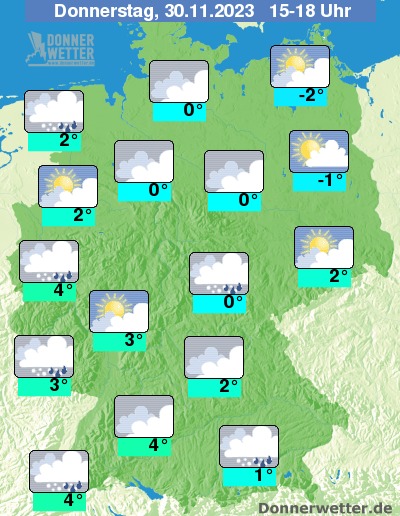 Die Temperaturen erreichen am Nachmittag Werte um -2 Grad an der Ostseeküste und 4 Grad in Breisgau.