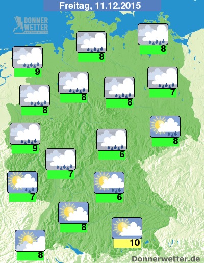 Am Freitag ist es im Süden und Osten noch meist locker oder aufgelockert bewölkt und trocken. Über der Nordwesthälfte startet der Tag aber bereits mit dichter Bewölkung und zeitweiligem Regen, der Regen breiten sich im Tagesverlauf auch auf den Osten des Landes aus, im Süden nehmen die Wolken zwar zu, aber hier bleibt es bis zum Abend, zumindest südlich der Donau trocken. Die Temperatur steigt auf 6 Grad in Unterfranken und bis 10 Grad in München.