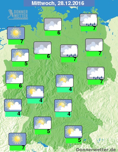 Am Mittwoch bleibt es im Norden und Osten der Republik meist bedeckt, dabei fällt hier auch gebietsweise Regen, weiter nach Süden und Westen hin heitert es aber zunehmend auf und es bleibt trocken. Am sonnigsten wird es dabei im Nordwesten und Südwesten Deutschlands. Die Temperatur steigt auf eher noch milde 4 bis 7 Grad.