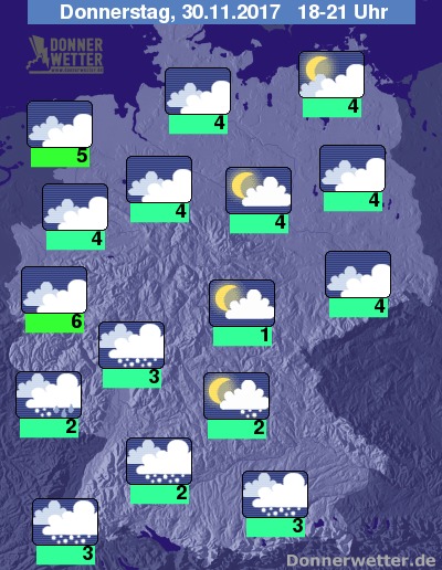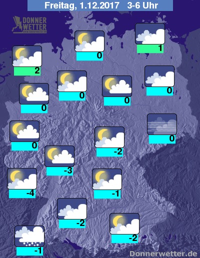 Im Lauf der Nacht zu Freitag ziehen sich die Schneefälle dann auch im Süden weiter zurück und es schneit nur noch im äußersten Südwesten. Sonst ist der Himmel meist dicht bewölkt, lediglich entlang des Niederrheins klart es zwischenzeitlich auf.
