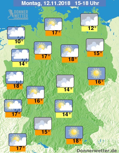 Die Temperaturen erreichen Werte um 10 Grad C an der Nordseeküste und sehr milde 18 Grad C in der Kölner Bucht.