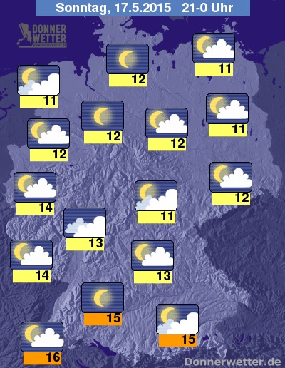In der Nacht zum Montag zeigt sich der Himmel meist locker bis aufgelockert, im Norden teils schon stark bewölkt, dazu bleibt es trocken. In der zweiten Nachthälfte ziehen sich die Wolken im Norden, vor allem aber im Nordwesten zu und dabei ist im Küstenumfeld der Nordsee auch Regen möglich, sonst bleibt es weiterhin trocken. Die Temperatur sinkt auf 8 Grad im nördlichen Emsland und bis 4 Grad am Fläming.