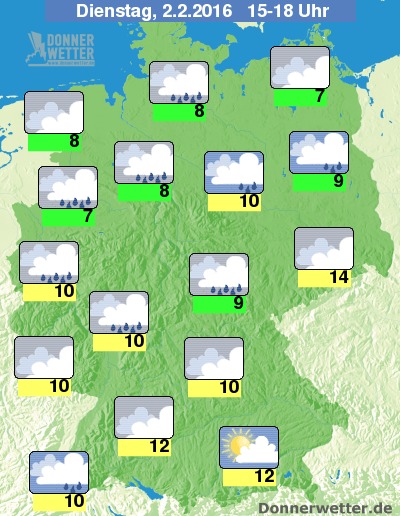 Am Donnerstag anfangs vor allem im Süden oft heiter und meist trocken, sonst verbreitet dichte Wolken und immer wieder, teils kräftiger Regen, teils Schneeregen oder Schnee, 3 bis 10 Grad, teils starker, an der See auch stürmischer Wind.