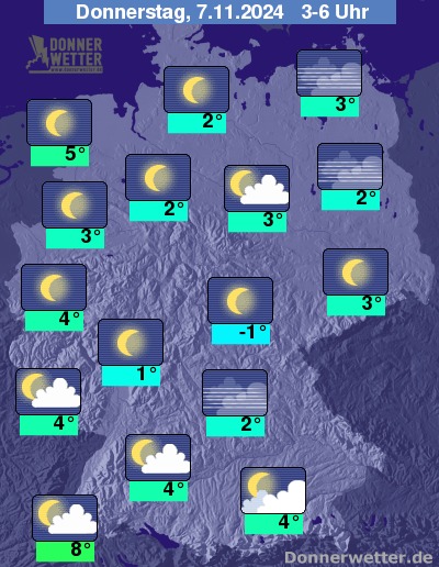 In der Nacht zum Donnerstag hält sich weiterhin verbreitet Nebel oder Hochnebel, gebietsweise ist es auch sternenklar oder nur gering bewölkt. Es bleibt trocken.