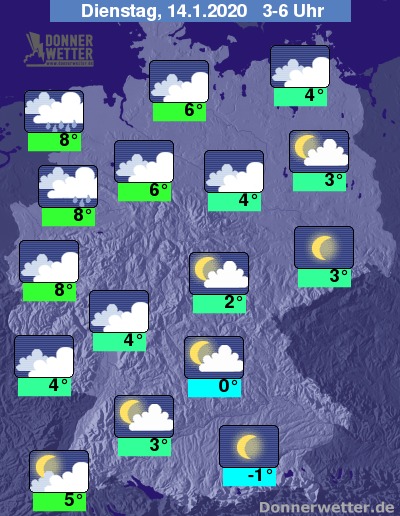 In der Nacht zeigt sich der Himmel zunächst im Westen überwiegend bedeckt, in den frühen Morgenstunden nimmt die Bewölkung dann auch im Norden des Landes immer weiter zu. Im Nordwesten muss dabei mit einzelnen Schauern gerechnet werden. Der Wind nimmt in der Westhälfte weiter zu, zeitweise sind dann Sturmböen möglich. Im Süden und Osten verlaufen die kommenden Stunden bei unter Sternen oder nur lockerer Bewölkung dabei deutlich entspannter.
