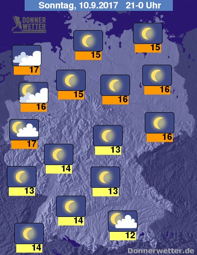 Am späten Abend klart der Himmel dann auch im Süden verbreitet auf, zwischen Niederrhein und Ostfriesland sind auch mal kompaktere Wolken unterwegs,