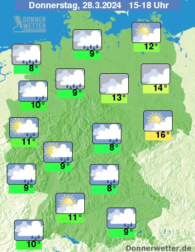 In einigen Regionen des Landes, etwa in Ostwestfalen und dem Teutoburger Wald, aber auch am Bodensee und in Oberbayern endete die erste Tageshälfte heute mittag sehr nass; komplett ohne Schirm ging es dagegen für die östlichen Landesteile bislang durch den Gründonnerstag.