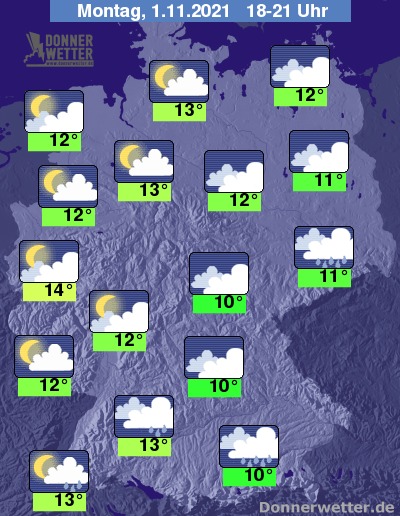 In der Nacht zum Dienstag ist es im Südosten des Landes und über Sachsen bedeckt und verbreitet regnerisch. Westlich einer Linie von Hamburg bis Freiburg zeigt sich der Himmel meist locker bewölkt oder sogar sternenklar. Im übrigen Bundesgebiet ist es hingegen meist stark bewölkt, jedoch bleibt es auch hier trocken. Die Temperatur sinkt auf 9 Grad in Dresden und bis 3 Grad in Wiesbaden.