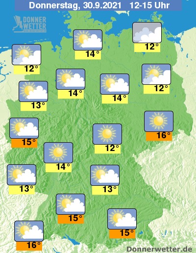 Heute Abend ziehen die dichten Wolken und nachfolgend auch Regen vom Nordwesten, auch bis in den Norden und Westen Deutschlands. Im übrigen Bundesgebiet ist es noch oft heiter, jedoch nimmt die Bewölkung nach und nach auch hier etwas zu, dabei bleibt es aber trocken. Die Temperatur liegt bei 12 Grad in Bremerhaven und 17 Grad in Freiburg.