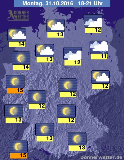 Heute Abend halten sich vom Osten bis zum Nordosten meist dichte Wolken aus denen es gelegentlich regnen kann. Im Norden ist es meist aufgelockert bewölkt, aber trocken. Im großen Rest der Republik zeigt sich der Himmel weitgehend sternenklar, dabei bleibt es trocken. Die Temperatur liegt bei 11 bis 15 Grad.