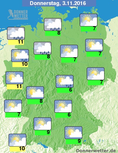 Dabei bekommen wir herbstlich, frische Temperatuen um die 6 Grad C in Nürnberg und um die 11 Grad C Rhein-Sieg-Kreis.
