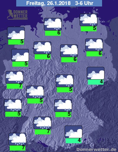 Im Lauf der Nacht behält die Niederschlagszone ihre Position über Deutschland bei, während von Westen weiterer Regen nachrückt. Am Morgen ist demnach vor allem im Südwesten mit anhaltendem Regen zu rechnen. In Nordseenähe sowie im äußersten Südosten des Landes bleibt es trotz dichter Wolken hingegen weiterhin trocken.
