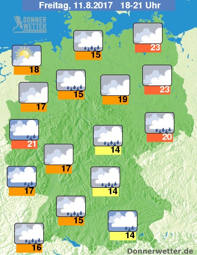 Heute Abend bleibt die Wolkendecke über der Bundesrepublik verbreitet geschlossen. Vor allem an der Nordsee können sich jedoch auch Auflockerungen zeigen, abgesehen davon fällt zeitweise und hierbei bevorzugt im Süden und Osten Regen. Die Temperatur liegt bei kühlen 14 Grad in Oberfranken und bis 23 Grad im Raum Berlin.