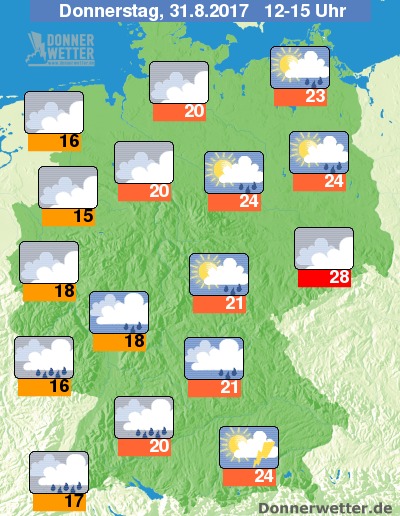 Am Nachmittag und frühen Abend bleibt der Himmel weiterhin überwiegend vollständig bedeckt. Entlang der Oder und der Ems scheint ab und zu die Sonne. Im Norden sind immer wieder Schauer möglich und zwischen Thüringen und dem Schwarzwald regnet es häufig. Im Westen ist es ebenfalls ungemütlich, aber es bleibt überwiegend trocken.