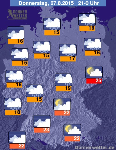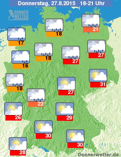 Am Donnerstag Abend sind Schauer und stärkere Regenfälle über den Norden Deutschlands angesagt. Besonders in den Bundesländern Niedersachsen und NRW. Im Süden Deutschlands bis in die Sächsische Schweiz hält sich das Wetter hingegen trocken. Es bestehen Warnungen für die Landesmitte.
