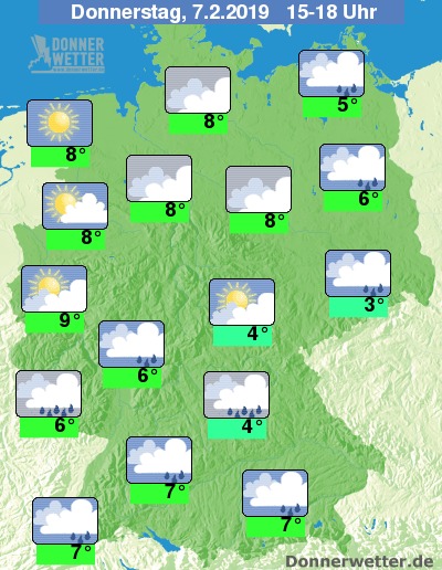 Am frühen Nachmittag dominieren häufig die Wolken und bringen zeitweise Regen. In kalten Mittelgebirgstälern besteht anfangs stellenweise noch die Gefahr von Glatteis. Lediglich über Sachsen und dem östlichen Bayern gibt es noch einige Aufheiterungen vor der Front und es bleibt zunächst noch trocken.