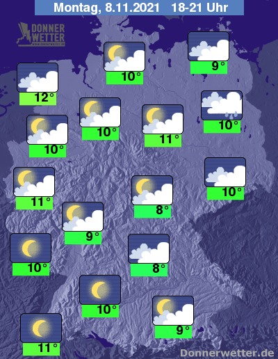 Heute Abend zeigt sich der Himmel im Südwesten und Süden verbreitet sternenklar oder nur gering bewölkt. Dichte Wolken halten sich noch von Vorpommern bis in die Lausitz, dabei fällt aber nur noch selten etwas Regen. Im übrigen Land ist es teils stark, teils aufgelockert bewölkt und dazu trocken. Die Temperatur liegt bei 8 Grad in Erfurt und etwa 12 Grad in Cuxhaven.