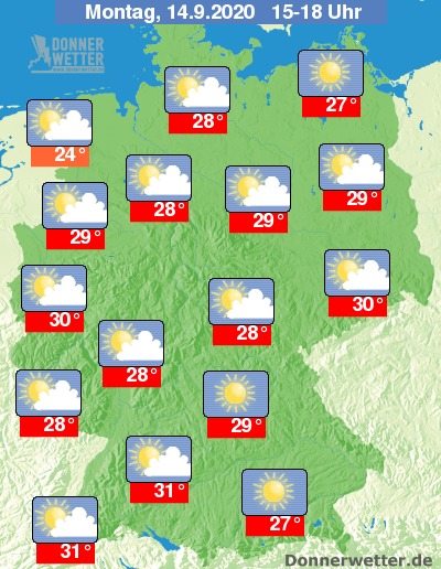 Bei Höchstwerten um 24 Grad in Ostfriesland und um 31 Grad am Oberrhein bleibt es trocken.
