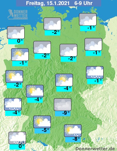 Die Temperaturen erreichen am Morgen Werte um -9 Grad in Franken und 0 Grad an der Nordseeküste.