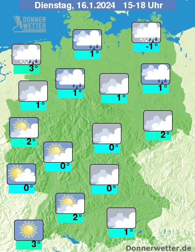 Heute Nachmittag zeigt sich der Himmel über der West- und Südwesthälfte heiter bis wolkig oder aufgelockert bewölkt und es bleibt meist trocken. In den übrigen Landesteilen überwiegt starke Bewölkung oder es ist bedeckt, in der Nord- und Osthälfte muss dabei gebietsweise mit Schneeregen- oder Schneeschauern gerechnet werden.
