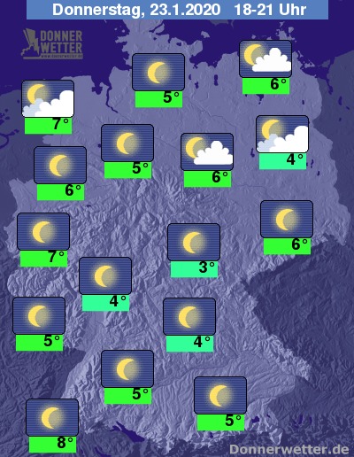 Zu Beginn der Dämmerung liegen die Temperaturen noch bei 3 Grad in Thüringen und 8 Grad am Kaiserstuhl.