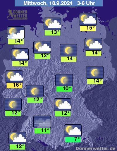 Die Temperaturen gehen in den frühen Morgenstunden zurück auf Werte um 16 bis 7 Grad.
