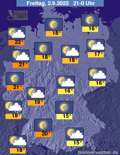 Die Temperaturen gehen bis Mitternacht auf Werte um 22 bis 15 Grad zurück.
