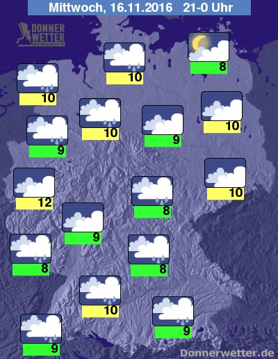Am späten Abend keine Sterne zu sehen bei dichter Bewölkung. Im Süden und entlang der Weser immer wieder Schauer möglich. Ansonsten überwiegend trocken.