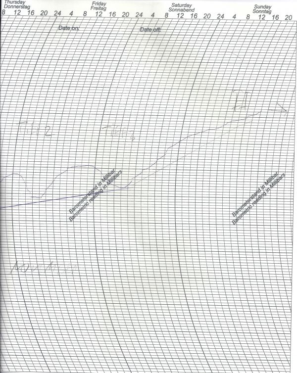 Mehrere Tiefdruckgebiete gaben sich in den letzten Tagen die Klinke in die Hand - das zeigt auch unser Schrieb. Zu sehen ist der Luftdruckverlauf zwischen Donnerstag und Sonntag, gemessen an unserer Wetterstation in Bonn: