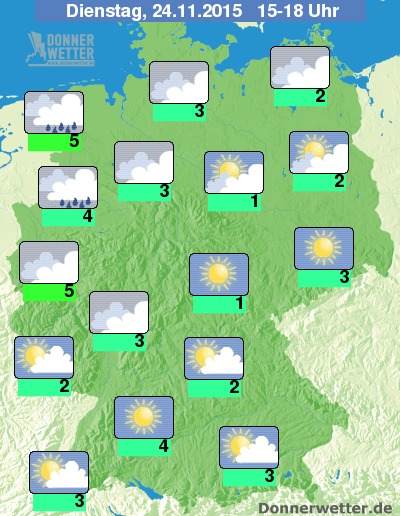 Heute Nachmittag scheint im Süden und Osten Deutschlands häufig die Sonne und es ziehen hier meist nur lockere Wolkenfelder durch, dazu bleibt es hier bis zum Abend noch weitgehend trocken. Von Nordwesten her ziehen hingegen verbreitet dichte Wolken über Nord- und Westdeutschland und bringen im weiteren Verlauf auch Regen, Schneeregen und teils auch Schnee mit örtlicher Glättegefahr. Die Temperatur steigt auf 1 Grad im Vogtland und bis auf etwa 5 Grad an der Nordseeküste. Im Norden und Nordwesten weht ein teils starker, an der Nordsee auch ein stürmischer Wind.