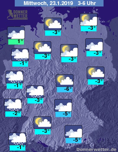 Bis zu den Frühstunden kühlt die Luft auf -6 bis -1 Grad ab, teilweise wird es aber noch kälter. Bei leicht positiven Werten bleibt es nur im Emsland, sowie auf den Nordseeinseln.