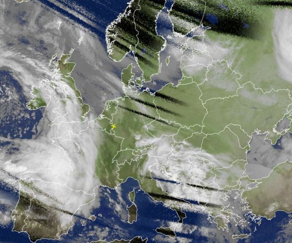 Das Satellitenfoto von heute Morgen zeigt über Westeuropa verbreitet dichte Bewölkung, dabei handelt es sich um die Ausläufer des Sturmtiefs "Helmut" über dem Atlantik. In den Regionen herrscht über weite Strecken sehr nasses, zum Großteil stürmisches und recht mildes Wetter. Vielerorts fällt langanhaltender und auch ergiebiger Regen.