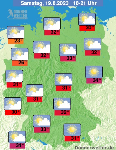 Die Temperaturen gehen bis Mitternacht auf Werte um 28 bis 21 Grad zurück.