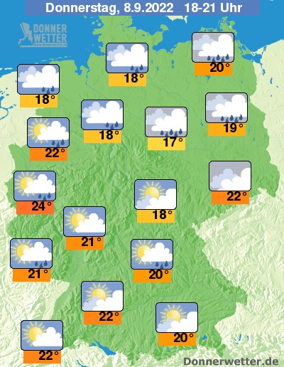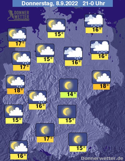 Die Temperaturen gehen bis Mitternacht auf Werte um 18 Grad in der Lausitz und 14 Grad im Thüringer Becken zurück.