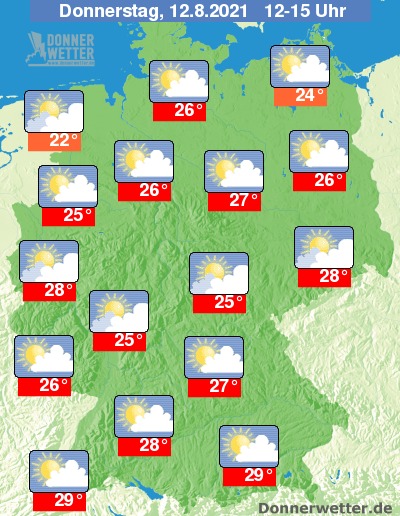Heute Nachmittag ist es über der Südhälfte der Republik heiter bis sonnig, im Norden ist es hingegen oft stark, teils locker, im übrigen Land meist aufgelockert bewölkt. Es bleibt landesweit trocken. Die Temperatur liegt bei 22 Grad an der Nordsee und rund 29 Grad am Oberrhein.